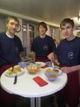 Victor Walker, Daniel Oberländer und Florian Göbel sind die ersten Schüler der 10.4, die aufgrund der Anregung von Herrn Wiedemann innerhalb von 30 Minuten ein gesundes Gericht gezaubert haben – allerdings nur für sich – schade! Im Englischbuch gibt es eine Lektion zum Thema „gesundes Kochen in 30 Minuten“ nach Jamie Oliver. Die Bedingung ist also, in dieser Zeit ein Gericht nachzukochen.