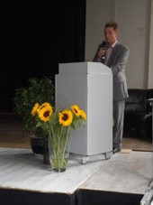 ![]() | Herr Barnickel, kommissarischer Schulleiter, zieht in seiner Rede Parallelen zum Namensgeber unserer Schule, Otto Lilienthal. |