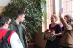 Frau Sturm betonte in ihrer Begrüßung neben der sozialen Verantwortung, die unsere Schule für das Collège übernimmt, auch den greif- und fassbaren Aspekt, der durch die Anwesenheit von Monsieur Elysée gegeben sei.